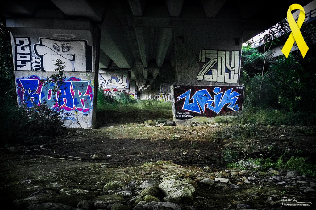 Just en el punt on l’AP7 remulla els seus peus al riu Ter s’hi exposa permanentment aquesta insòlita galeria de graffitis. Els treballs de neteja de troncs i branques del riu, arrossegats a principis d’any per l’huracà Glòria, han obert nous camins que, de retruc, faciliten la visita d’aquest aquest no-lloc, inhòspit i secret.