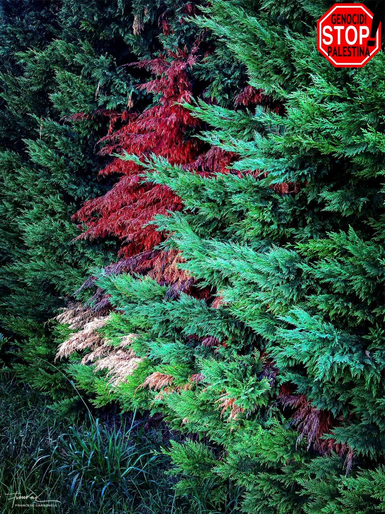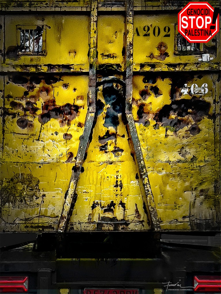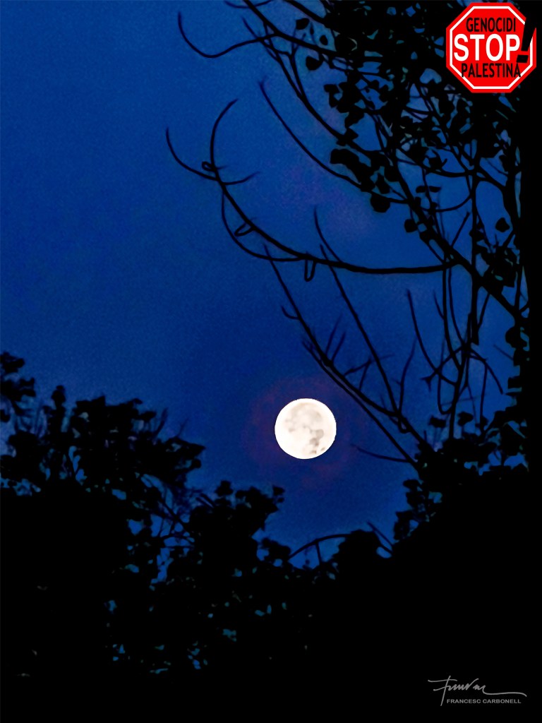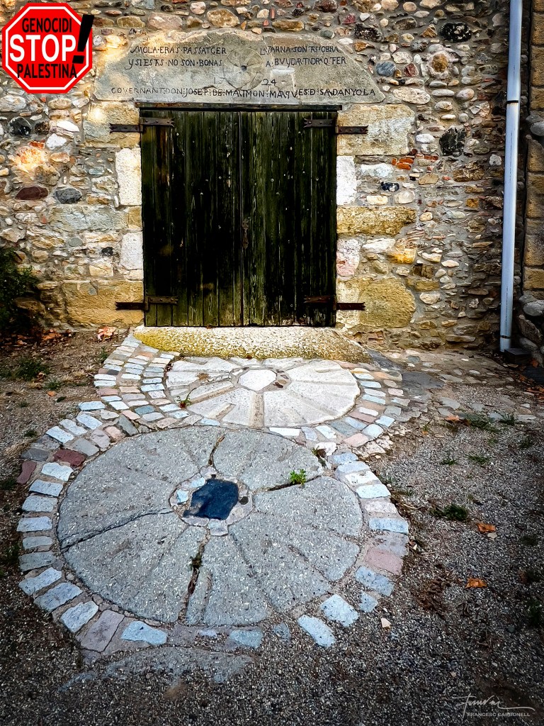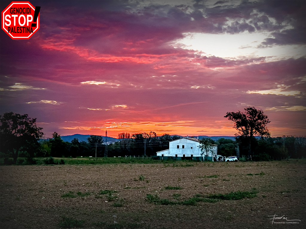 Surt el sol desprès d’una nit de festa.Però el sol surt per a tothom.I quan s’amaga… surt la lluna, també per a tothom, és clar.Després de segar i batre una mala anyada.Tanca de xiprer. No he aclarit si el canvi de color d’algunes branques es degut a algun fong o a alguna malaltia…Saüc pudent (Sambucus ebulus), també anomenat èvol. Molt bonic però molt tòxic.Segurament les restes del tiberi d’un esparver o d’un falcó.La porta del molí vell, amb moles de pedra com a catifa d’entrada i també amb una mola gravada a la llinda de 1724.Composició de la porta del darrere del camió carregat de ferralla.I com a contrast, una branca minimalista destrossada per les moltes rodes de cotxe que li han passat per damunt.