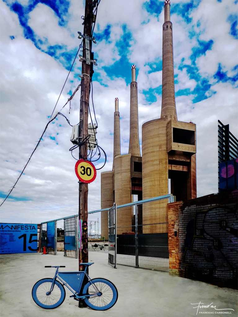 L’edició d’enguany de la Biennal Nòmada Europea MANIFESTA 15 s’ha instal·lat del vuit de setembre al 24 de novembre a diversos punts de l’Àrea Metropolitana de Barcelona. Un d’ells ha sigut aquest espai de l’antiga central tèrmica de generació d’energia elèctrica (en desús des del 2010), ubicada a Sant Adrià del Besós (Barcelonès). Cada xemeneia té una alçada total de 200 metres.